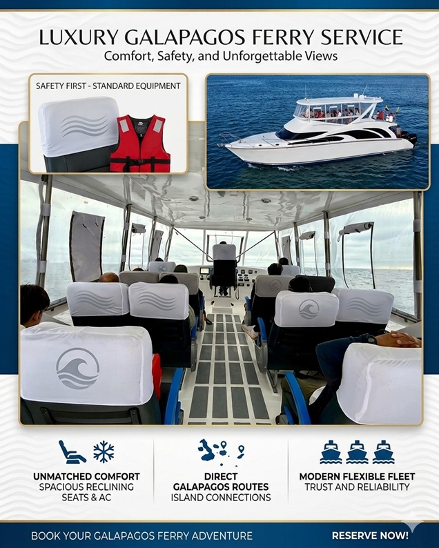 Book your Galapagos ferry tickets easily and securely. Daily inter-island departures with trusted service.